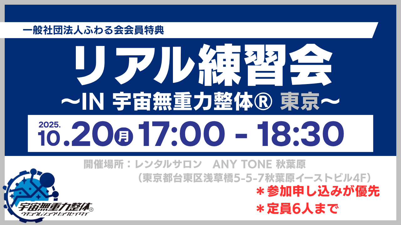 ※イベントについては ”参加申し込みが優先” となります。 ベッド数の関係上 ”定員6名まで” とさせていただきます。 お申込みをされずに来店された場合、参加できない可能性がございますので、ご了承ください。 日時:2025年10月20日(月) 17:00~18:30場所:東京都台東区浅草橋5-5-7秋葉原イーストビル4F