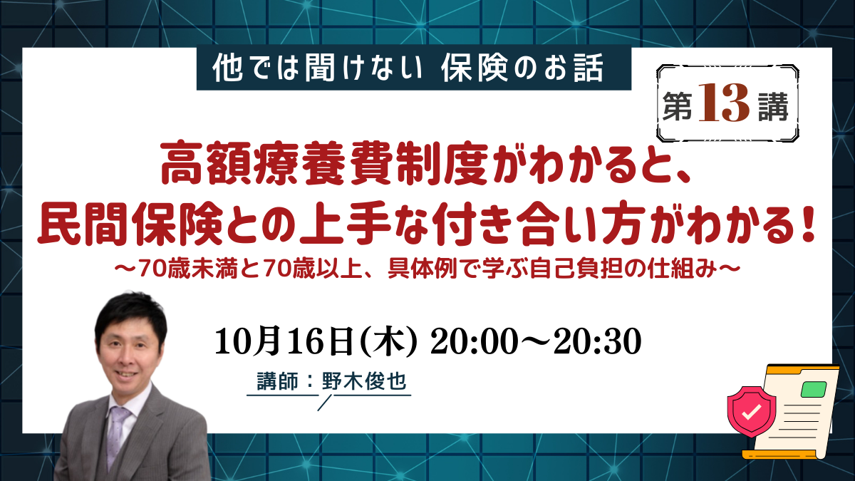 第13講 高額療養費制度がわかると、民間保険との上手な付き合い方がわかる!
