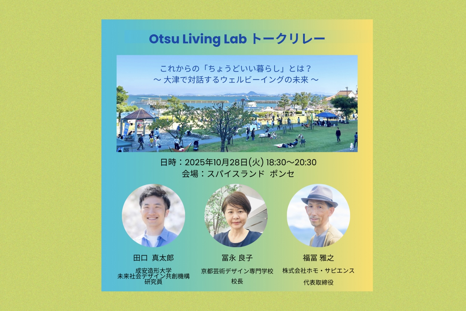 今回のトークリレーでは、建築家・教育者として北欧でのウェルビーイングな暮らしを実践してきた冨永良子氏(京都芸術デザイン専門学校 校長)をゲストに迎え、福冨雅之氏(株式会社ホモ・サピエンス 代表取締役)、田口真太郎氏(成安造形大学 研究員)とともに、「大津での心地よい暮らし」「人と人のつながりの形」について語り合います。