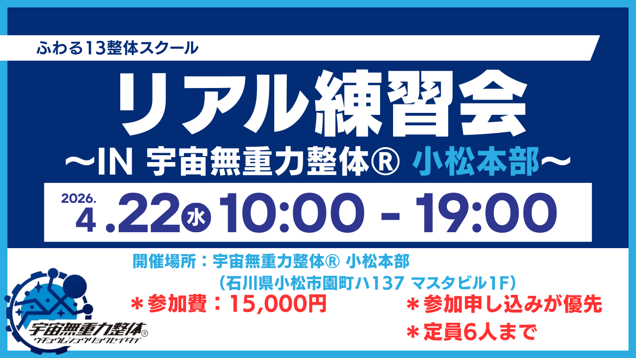 開催場所:石川県小松市園町ハ137 マスタビル1F (宇宙無重力整体®)