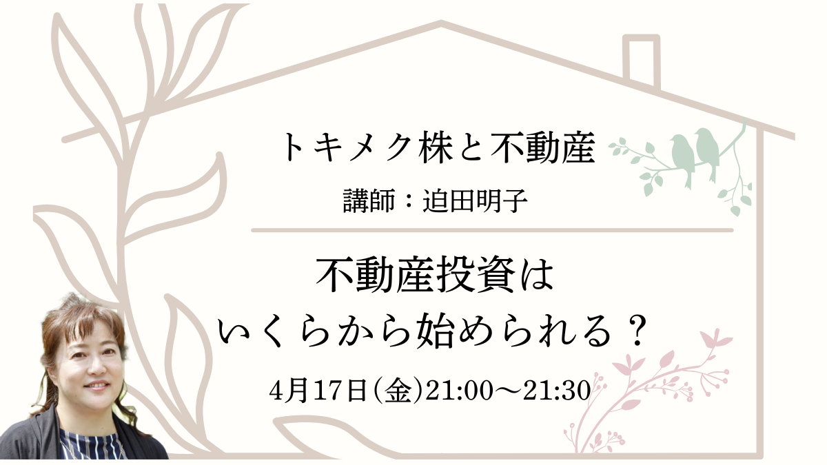 トキメク株と不動産 「不動産投資はいくらから始められる?」