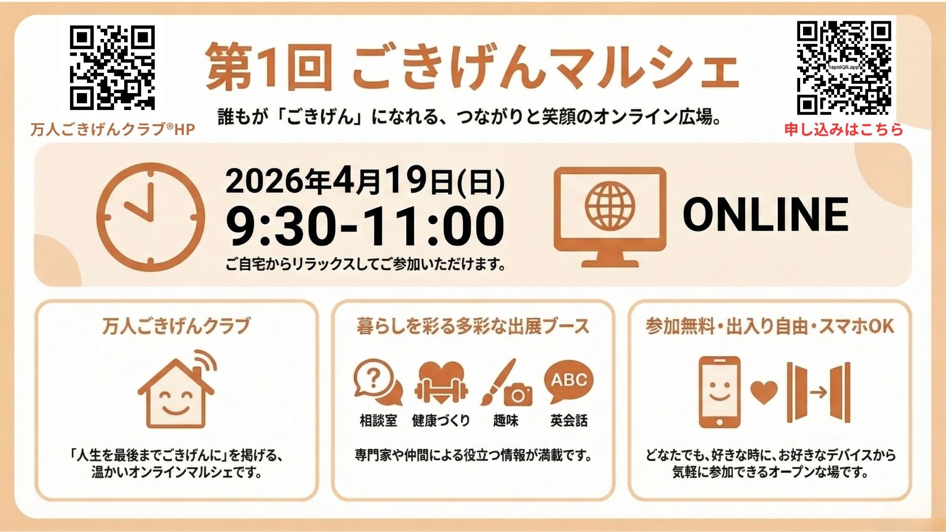 万人ごきげんクラブの仲間たちのサービスや商品をマルシェ形式で紹介するオンラインマルシェです。