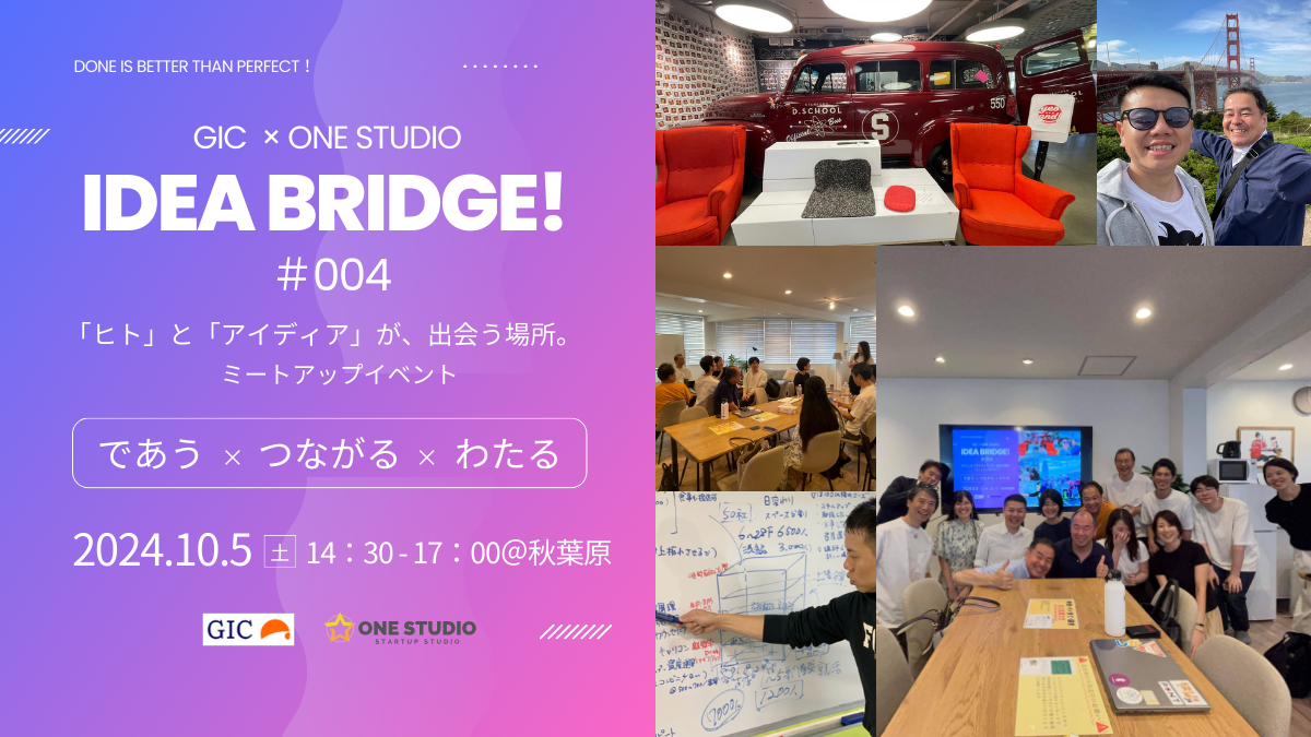 2024年10月5日(土) 14:30 【IDEA BRIDGE】Meetup!#004参加者数:5イベント評価:★★★★★ -