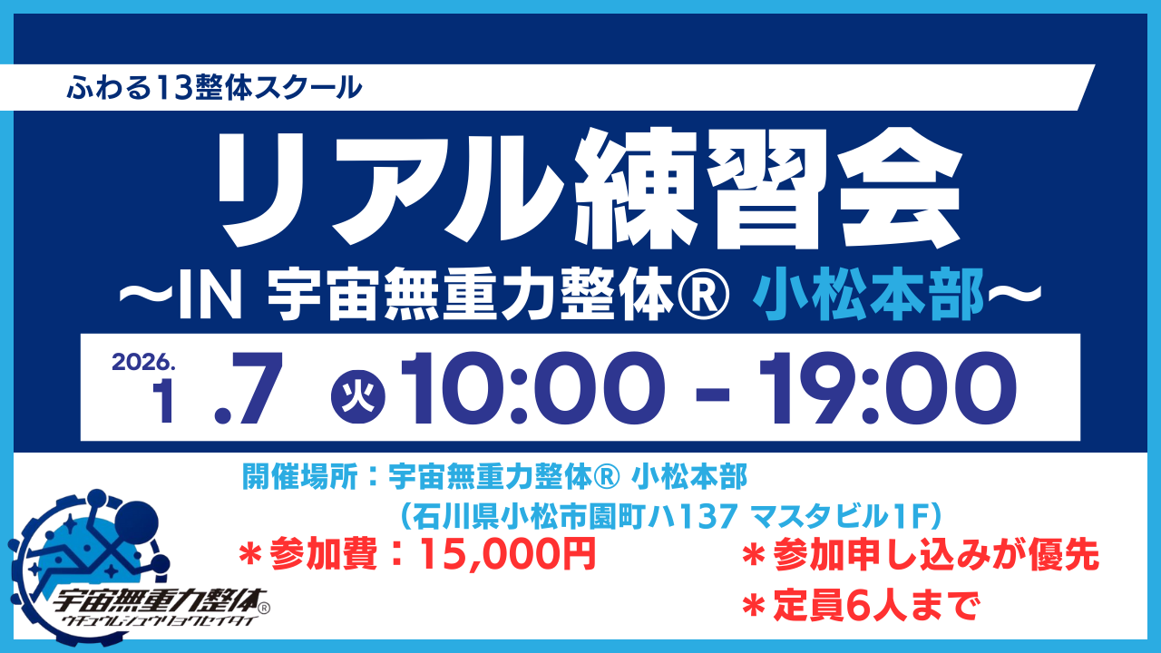 開催場所:石川県小松市園町ハ137 マスタビル1F (宇宙無重力整体®)