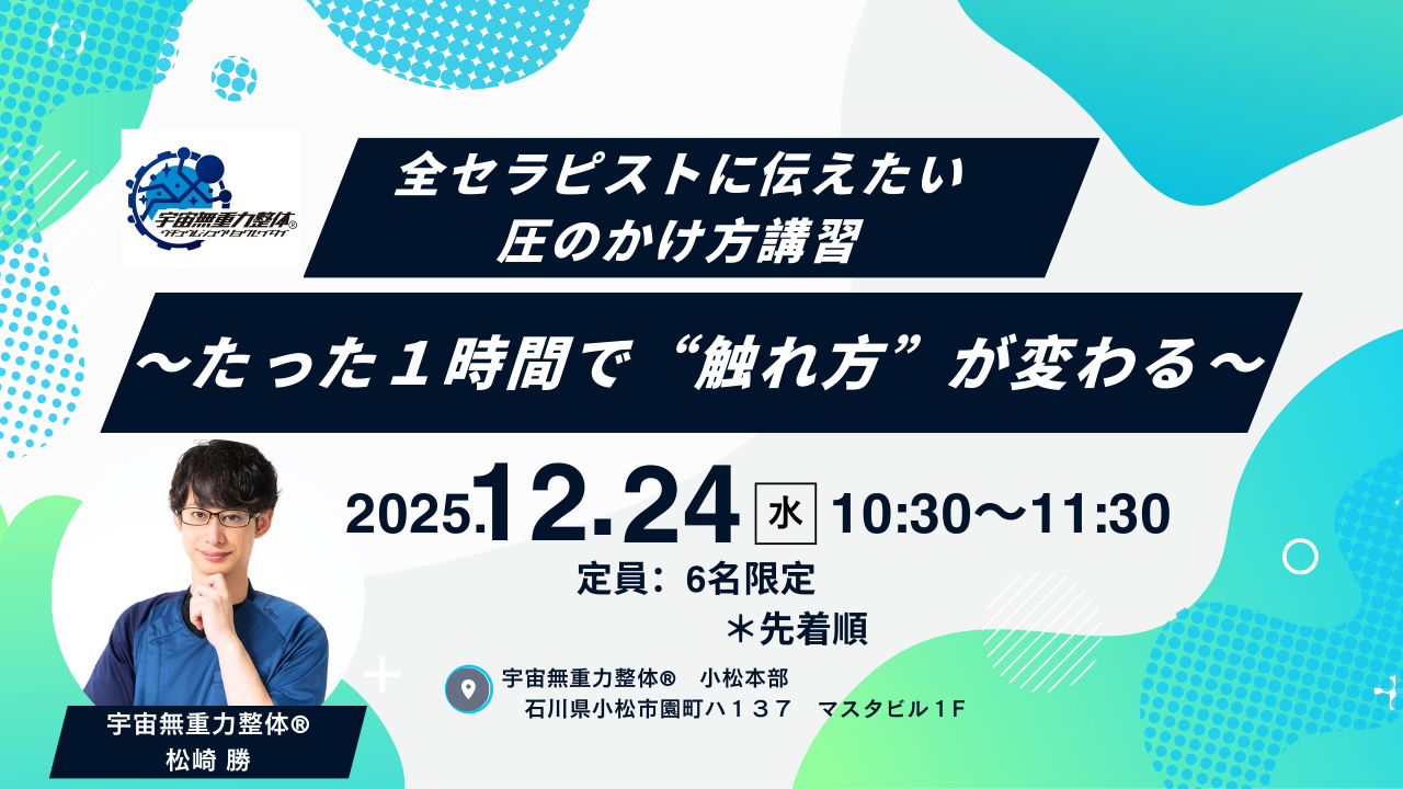 【小松】全セラピストに伝えたい圧のかけ方講習~たった1時間で“触れ方”が変わる~