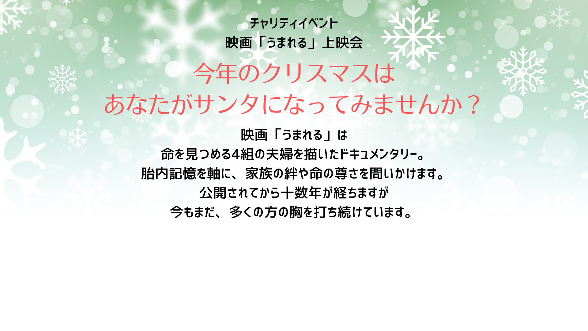 映画「うまれる」上映 + 命のツムギトークセッション(胎内記憶の専門家3名)
