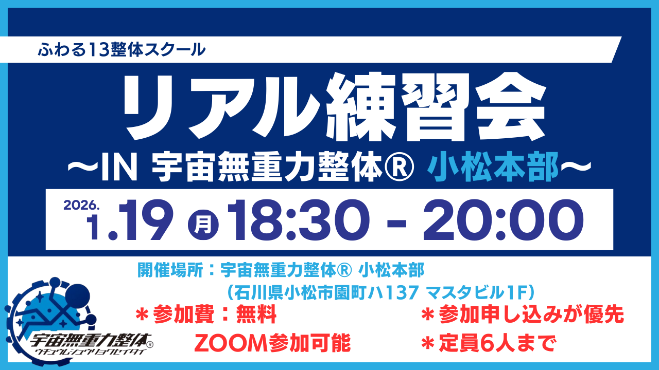 開催場所:石川県小松市園町ハ137 マスタビル1F (宇宙無重力整体®)
