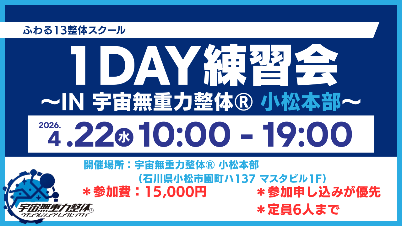 開催場所:石川県小松市園町ハ137 マスタビル1F (宇宙無重力整体®)