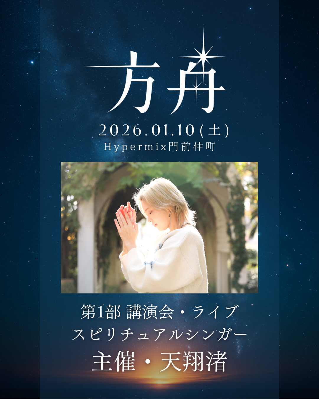 体と心とエネルギーから述べ2000人以上の潜在意識を書き換えてきた気功×コーチによる特別講演&ミニライブ。自身初となる楽曲であり、本イベントテーマソング「方舟に乗って」