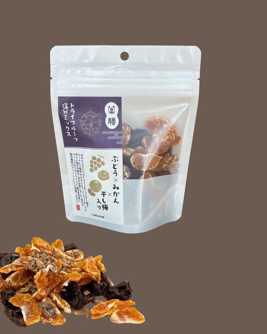 ②神仏習合ラベルの国産ドライフルーツ塩分ミックス/ぶどう・みかん・干し梅(70g)