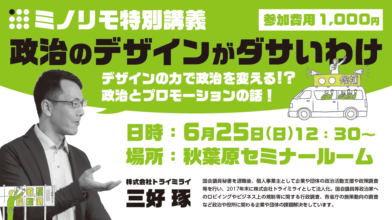 さて、6月25日にお話をさせていただく僕は自分自身でも選挙に2回立候補して、国会で秘書もやり、様々な選挙に関わってきましたが、いつも感じるのは政治家のプロモーション力の低さ。。
