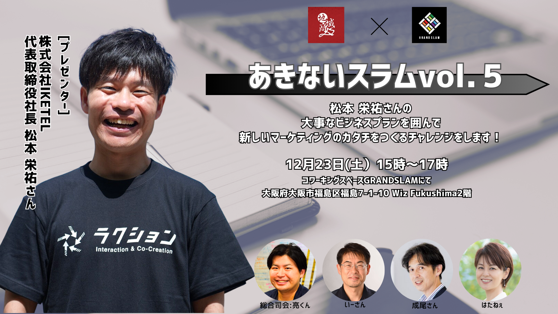 2023年12月23日(土) 15:00 あきないスラム. vol.5参加者数:6イベント評価:★★★★★ -